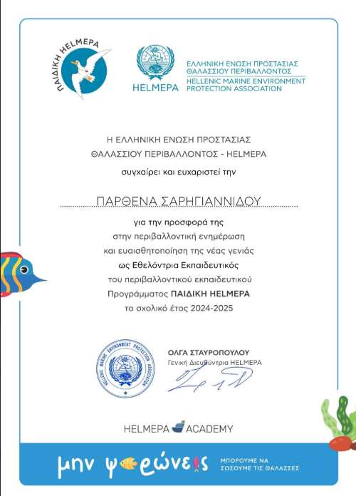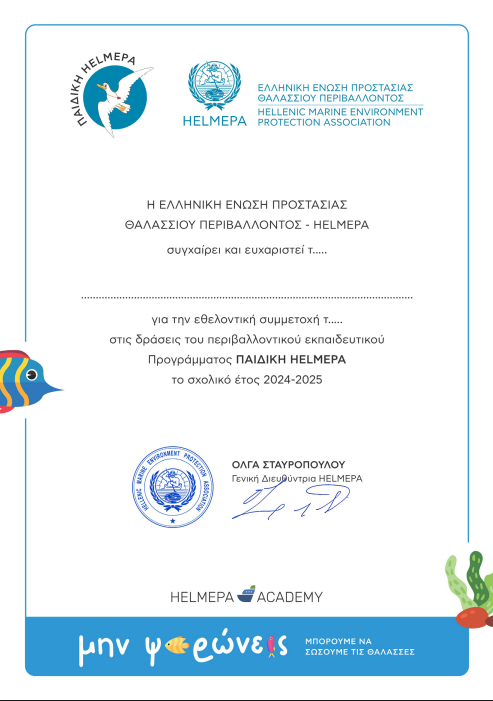 By mail_s4i0b0ft26/06/2025«Παιδική HELMEPA – Η θάλασσα είναι ζωή», Εργαστήρια ΔεξιοτήτωνLeave a Comment on Helmepa-Αναμνηστικά Διπλώματα Για την συμμετοχή μας στο πρόγραμμα λάβαμε και τα αναμνηστικά Διπλώματά μας!